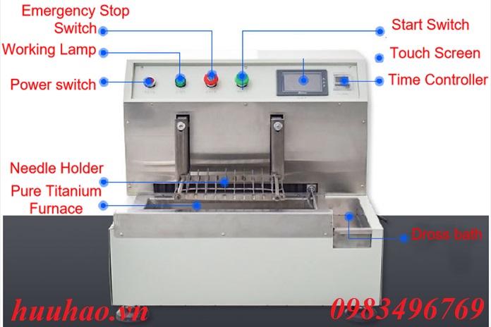 - Ống gia nhiệt nhập khẩu được sử dụng sau khi xử lý cách nhiệt, có tuổi thọ cao. Kiểm soát nhiệt độ là điều khiển PID với độ chính xác ±2°. Lò thiếc được làm bằng titan nguyên chất công nghiệp và đầu dò nhiệt độ là cặp nhiệt điện loại K.