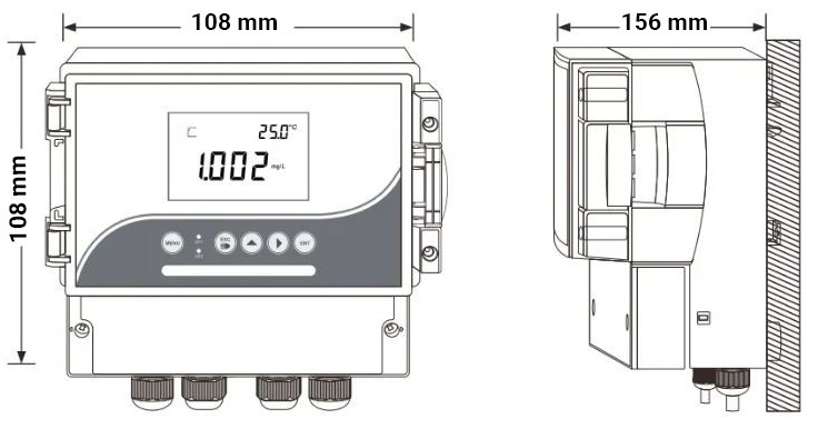 - Màn hình LCD hiển thị nhiệt độ và nồng độ hòa tan ozone trong nước (mg/l = ppm).