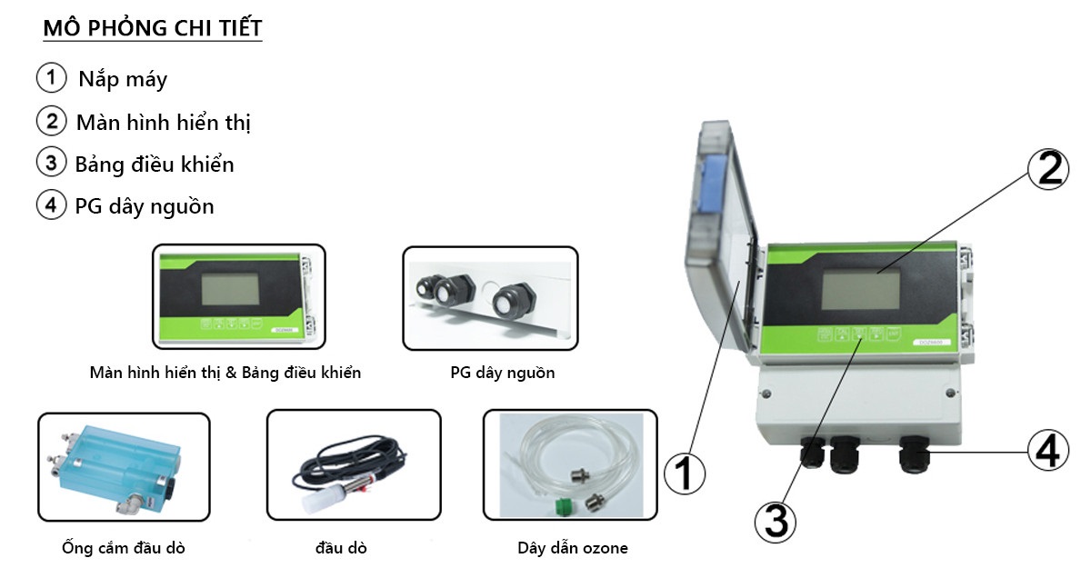 - Dải đo ozone: 0-20,00 mg/L