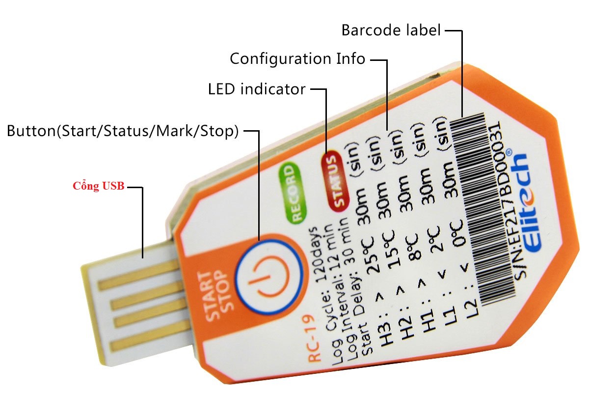 Bộ ghi dữ liệu nhiệt độ Elitech RC-19 Cổng USB 16000 điểm