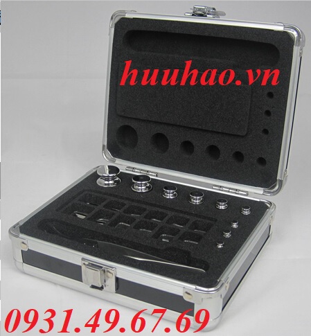 - Quả cân bao gồm: hộp đựng riêng từng quả cân, chia ngăn, chứa trong hộp bằng nhôm ( như hình) có chốt đóng, có nhung đen lót bảo vệ bên trong cho quả cân