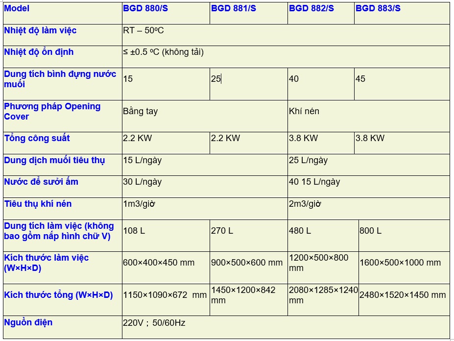 Thông số kỹ thuật buồng phun sương muối hãng Biuged:
