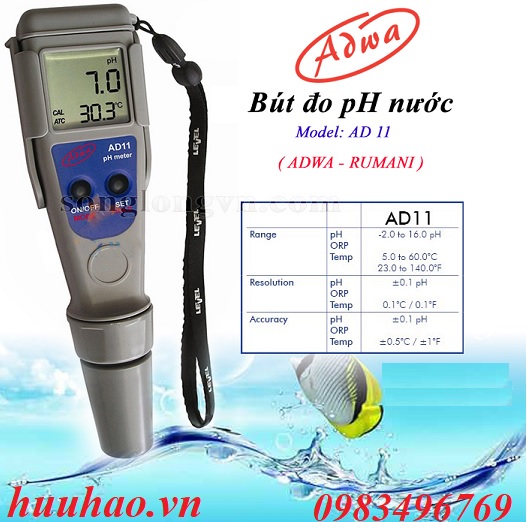 - Bút đo ph AD-11 là thiết bị chuyên dùng để đo độ pH trong ngành nuôi trồng thủy sản, thủy sinh, nông nghiệp, bể cá, nước thải, nước máy, nước trong ao hồ chuyên nuôi trồng thủy hải sản, nước thâm canh...