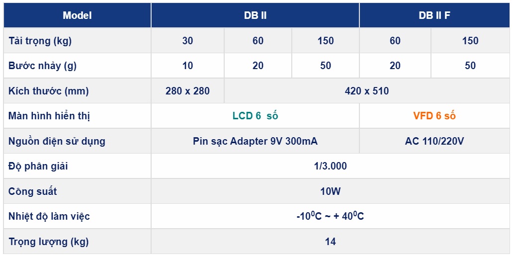 Tính năng Cân bàn đa năng DB-II Series CAS: