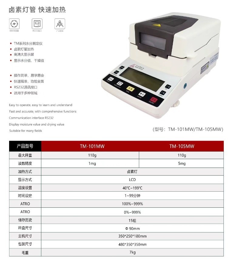 Giới thiệu cân phân tích độ ẩm hồng ngoại halogen TM-101MW: