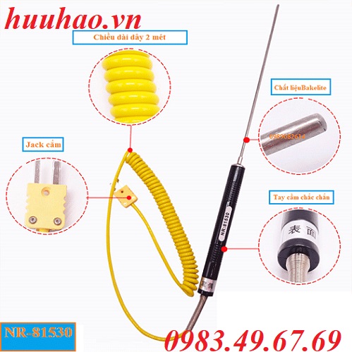 - Đầu dò nhiệt độ NR-81530 là loại đầu dò cặp nhiệt điện bề mặt được thiết kế để đo nhiệt độ bề mặt của môi trường rắn ở nhiều hình dạng khác nhau, cũng như để đo nhiệt độ bên trong chất lỏng, khí và cao su. Chúng được sử dụng rộng rãi và không bị giới hạn bởi hình dạng bề mặt của vật thể. Chúng có trọng lượng nhẹ và dễ dàng mang theo, đặc biệt là tại nơi chế biến. Áp dụng, sử dụng rộng rãi trong dệt may, in và nhuộm, giấy, nhựa, cao su và trong kiểm tra nhiệt độ thực phẩm, dầu các chất lỏng khác, đo khí.