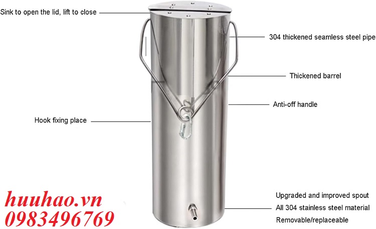 - Chất liệu: Thép không gỉ 304 dày