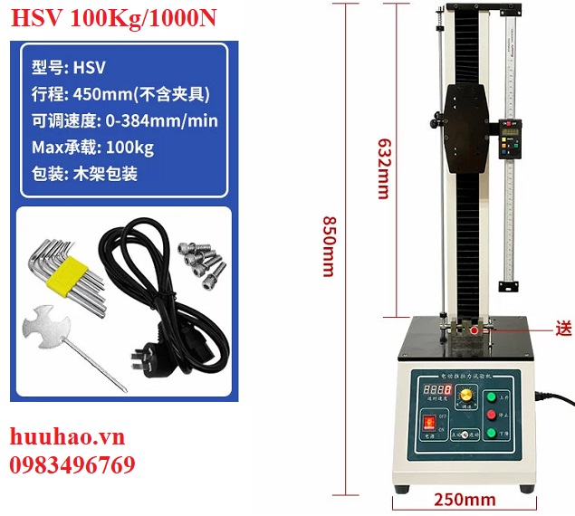 Thân máy đo lực tự động HSV + màn hình kỹ thuật số 1000N/100kg và bộ phụ kiện: