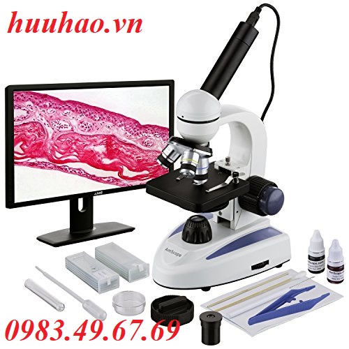 - Đây là một kính hiển vi hoàn hảo với một máy ảnh kỹ thuật số USB 640 x 480 pixel cho học sinh tìm hiểu khoa học. Có năm cài đặt độ phóng đại, 40X, 100X, 250X, 400X và 1000X. Nó đi kèm với các yếu tố quang học hoàn toàn bằng thủy tinh, khung kim loại, đầu một mắt xoay 360 độ nghiêng 45 độ, hệ thống chiếu sáng LED và một máy ảnh kỹ thuật số có thể tháo rời 640x480 pixel. Hệ thống chiếu sáng LED sử dụng ổ cắm (bao gồm bộ chuyển đổi) hoặc ba pin AA.