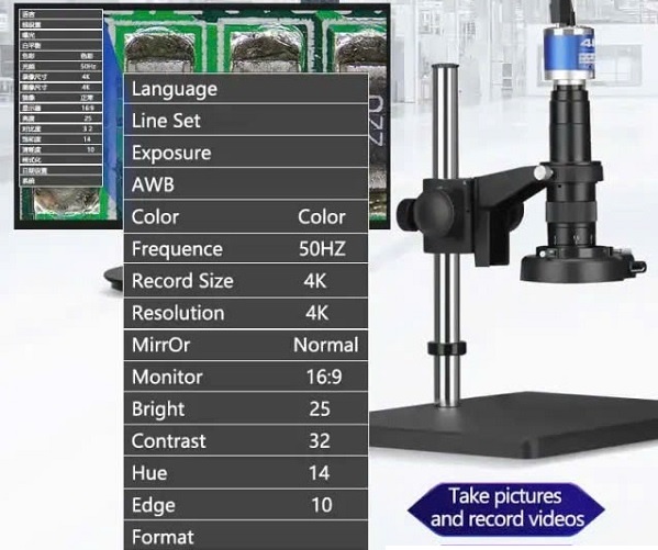 - Một thấu kính kính hiển vi 7X đến 180X Một Camera 4K