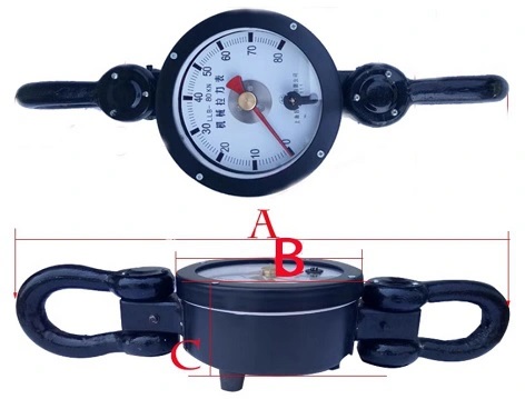 - Sản phẩm có thể dùng để đo lực căng trong vận tải sông và đánh bắt cá biển, nó có thể được sử dụng để đo trọng lượng khi đánh bắt tảo bẹ và các loại hải sản khác, nó có thể được sử dụng để đo lực kéo của các thiết bị cơ khí khác nhau, nó có thể được sử dụng để đo độ căng của đường dây điện cao thế trong ngành điện, nó có thể được sử dụng để xây dựng kỹ thuật, đo trọng lực của máy bay vận tải, đo lực kéo cho các thiết bị an toàn khác nhau. Nó có thể đo giá trị tức thời của lực cản dưới tải tĩnh và tải động. Kim màu đỏ trên mặt số có thể đọc giá trị lực kéo tối đa trong quá trình đo.
