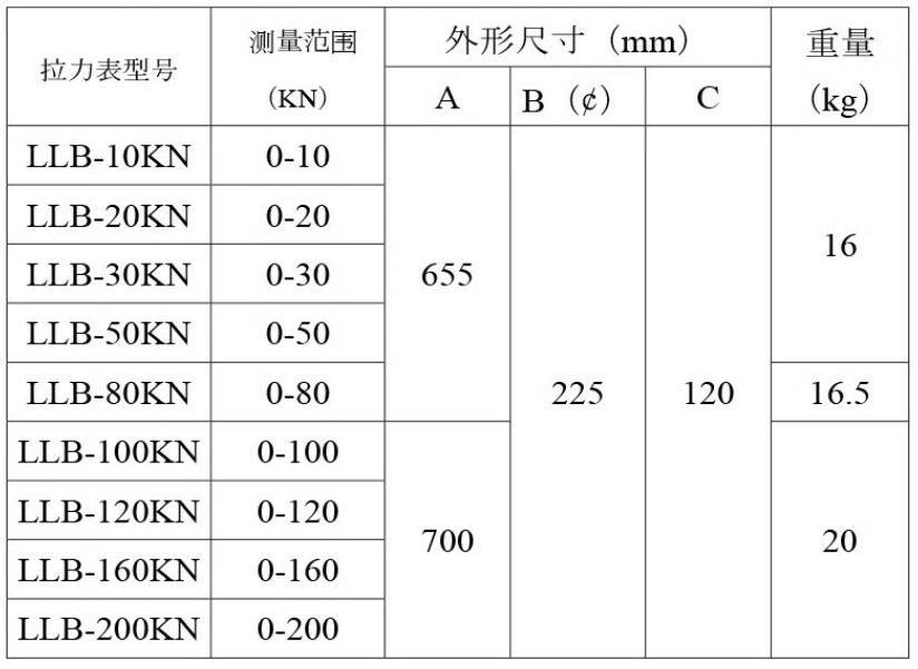 Model: LLB-10KN (1 TON), LLB-20KN (2 TON), LLB-30KN (3 TON), LLB-80KN (8 TON), LLB-100KN (10 TON), LLB-120KN (12 TON), LLB-160KN (16 TON), LLB-200KN (20 TON)