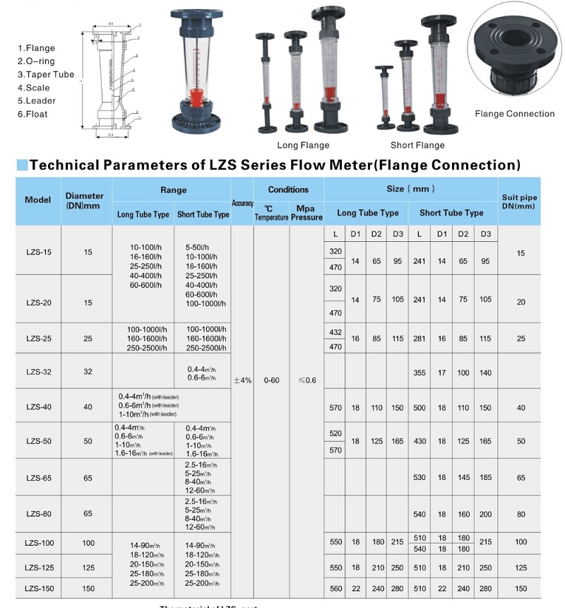 Lưu lượng kế đo nước mặt bích LZS-15, LZS-20, LZS-25, LZS-32, LZS-40, LZS-50, LZS-65, LZS-80, LZS-100, LZS-125, LZS-150