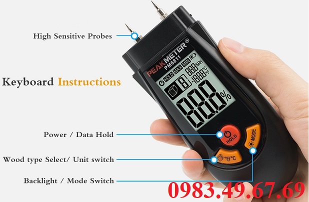 - Máy đo độ ẩm gỗ giấy và bê tông PM6811 dùng để đo chuyên dụng độ ẩm của vật liệu gỗ,giấy và bê tông cho độ chính xác cao.