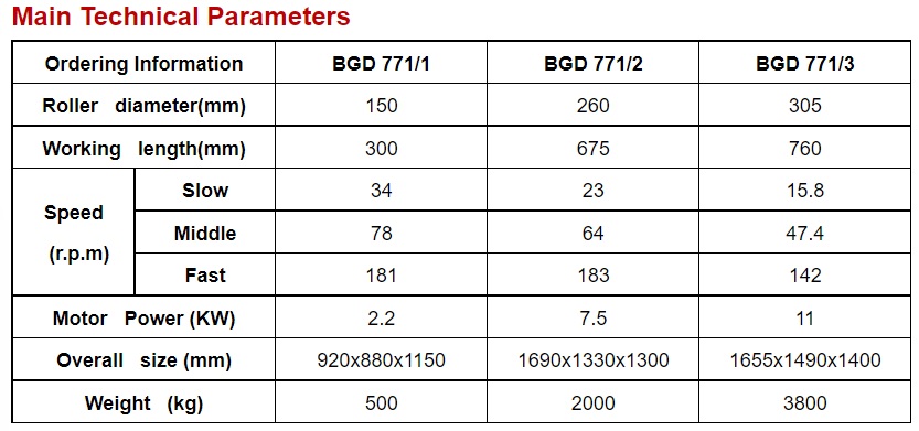 Thông số kỹ thuật máy cán nghiền 3 trục BGD 771/3