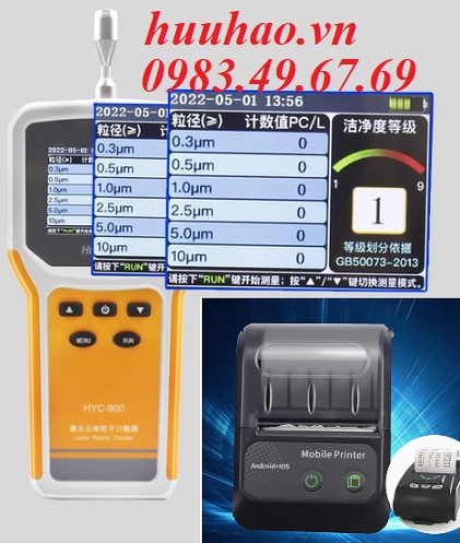 Máy đo nồng độ bụi, máy đếm hạt bụi, Máy đếm hạt bụi phòng sạch, Máy đếm hạt bụi laser cầm tay 6 kênh HYC900 có in nhiệt liên kết Bluetooth
