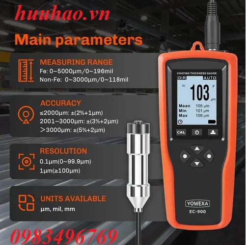 Thông số kỹ thuật máy đo độ dày lớp phủ độ chính xác cao Yowexa EC-900: