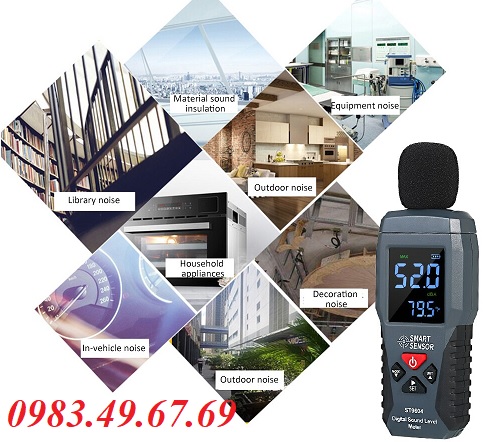 - Máy đo độ ồn Smart SenSor ST9604 này được thiết kế để kiểm tra mức độ âm thanh trong nhiều môi trường khác nhau. Nó được sử dụng rộng rãi trong kỹ thuật kiểm soát tiếng ồn, kiểm soát chất lượng, sức khỏe và giám sát môi trường gia đình… Lý tưởng cho công tác đo kiểm tra mức độ ồn nơi dân cư, thư viện, sân vận động, nơi cư ngụ…