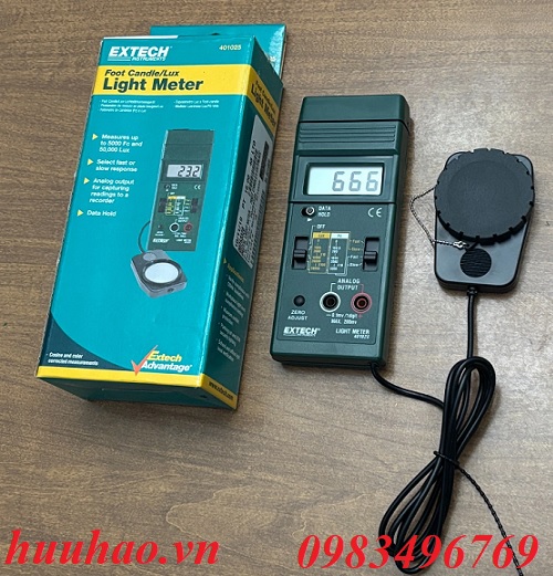 - Máy đo ánh sáng Extech 401025 là máy đo sáng chuyên nghiệp được sử dụng để đo ánh sáng với một độ chính xác cao. Máy được thiết kế gọn nhẹ, thích hợp bỏ túi khi di chuyển. Thao tác với máy nhanh, cho kết quả được hiển thị trực tiếp trên màn hình LCD.