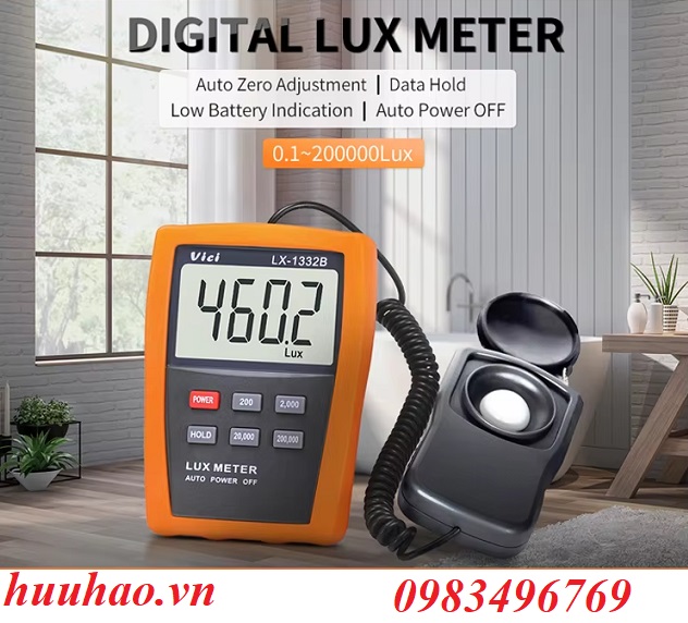 Máy đo độ sáng/ánh sáng kỹ thuật số chuyên nghiệp LX-1332B, phạm vi đo 1~200.000 Lux, máy đo độ rọi, 4 dải đo với cảm biến quang điện và bộ lọc + chức năng giữ dữ liệu.