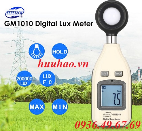 - Máy đo ánh sáng Benetech GM1010 là một thiết bị được thiế kế sáng tạo với phần mềm độc lập và cải thiện mạch độc lập, để làm cho sản phẩm chính xác hơn, ổn định hơn so với sản phẩm các dòng sản phẩm tương tự. Với đèn nền thích hợp cho những hoạt động trong môi trường tối, máy có thể được sử dụng trong các khu dân cư, nhà, cửa hàng làm việc hay văn phòng…