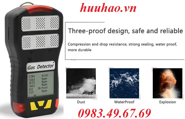- Tỷ lệ độ phân giải: LEL:1% LEL, O2:0.1% vol, CO2:0.01% vol, CO/H2S/NH3:1ppm