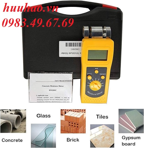 - Đồng hồ đo độ ẩm bê tông DM200C là một dụng cụ tiên tiến có độ tin cậy rất cao. Máy áp dụng công nghệ đo tần số cao để đo nhanh độ ẩm của các loại vật liệu cứng: thạch cao, bê tông... và được ứng dụng rất nhiều trong lĩnh vực xây dựng.