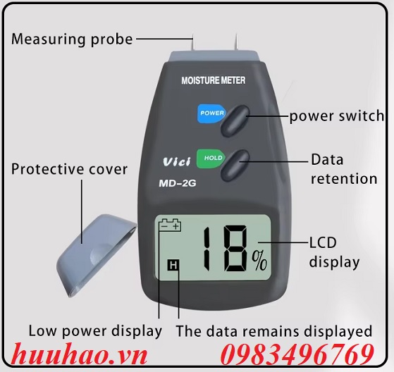 - Nhanh chóng và chính xác, trọng lượng nhẹ, dễ vận hành, chọn mã gỗ, hold là tất cả tính năng có trong MD-2G và sẽ giúp công việc đo ẩm gỗ của bạn trở lên đơn giản nhất!