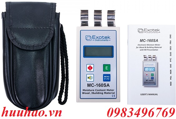 - Máy đo độ ẩm Exotek MC-160SA là thiết bị sử dụng vi xử lý dạng cầm tay. Máy đo độ ẩm Exotek MC-160SA dễ sử dụng, đáng tin cậy và cung cấp một phương pháp đo độ ẩm nhanh và không cần phá hủy vật liệu dùng cho gỗ hay vật liệu xây dựng