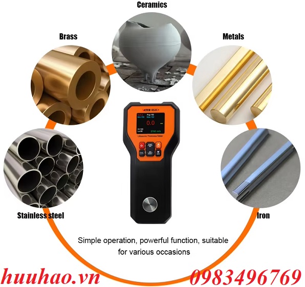 - Đây là loại máy đo độ dày siêu âm thông minh và có thể đo độ dày và tốc độ âm thanh của nhiều loại vật liệu như kim loại, nhựa, gốm, thủy tinh và các chất dẫn sóng siêu âm tốt khác.