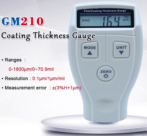 - Máy đo độ dày lớp phủ GM 210 là thiết bị giúp đo độ dày lớp phủ không từ tính để ứng dụng để đo độ dày lớp sơn, lớp mạ ngoài bảo vệ vật liệu cho phép xác định độ dày của lớp phủ mà không làm ảnh hưởng đến bề mặt sơn phủ trong quá trình đo đạc.