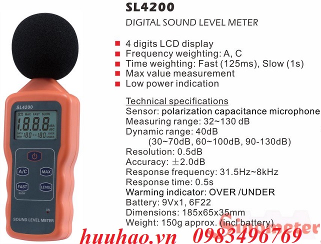 - Máy đo tiếng ồn SL4200 máy đo âm thanh này là sản phẩm thông minh được phát triển theo tiêu chuẩn Quốc tế IEC PUB 651 TYPE2 và tiêu chuẩn Mỹ ANSI S1.4 TYPE2.