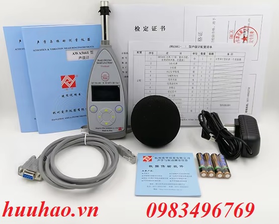 - Cung cấp bao gồm: Máy chính model: AWA5661-3, đầu dò tiếng ồn Microphone AWA14425, Cáp USB kết nối máy tính, 04 pin AA, valy chứa máy và tài liệu hướng dẫn sử dụng