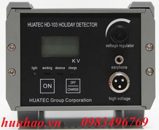 - Máy dò độ xốp, độ kín, dò khuyết tật kim loại HD-103 Huatec được sử dụng để phát hiện và định vị khuyết tật các lỗ kim, điểm trần hoặc điểm mỏng trong lớp phủ bảo vệ áp dụng cho lớp phủ chống ăn mòn trên bề mặt kim loại và bê tông (dẫn điện).
