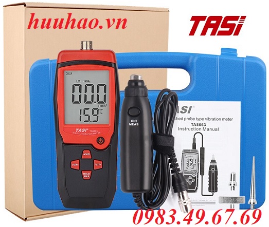 - Đóng gói máy đo độ rung TA8663 TASI: Máy chính, đầu đo từ tính đầu đo nhọn, Hộp, hộp đựng máy.