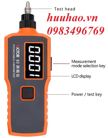 Máy đo độ rung VC63 0~1999um bỏ túi đo độ dịch chuyển, vận tốc và gia tốc của các vật thể điện năng