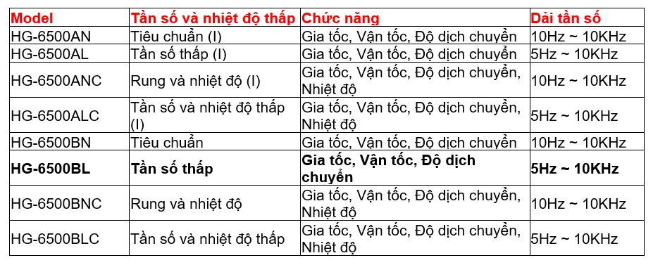 Thông số kỹ thuật máy đo độ rung tần số thấp HG-6500BLC:
