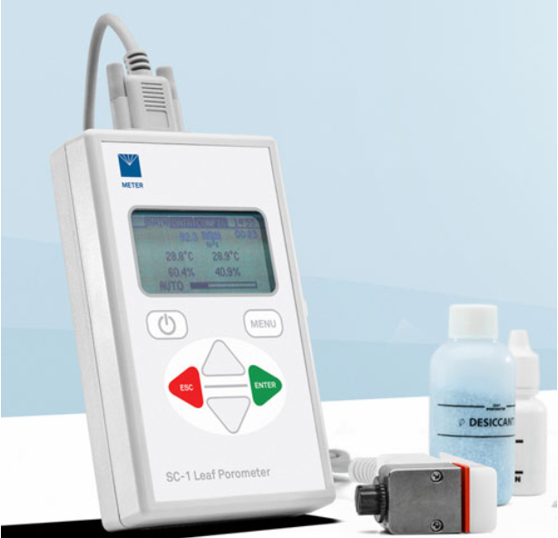 - SC-1 Leaf Porometer thiết kế để đo đơn giản cho vấn đề phức tạp. Bằng cách đo dòng hơi nước qua lỗ thở (stomata) của lá, máy cho biết sự thoát hơi nước khác nhau của các lá và những lá đang đóng (lỗ thở).