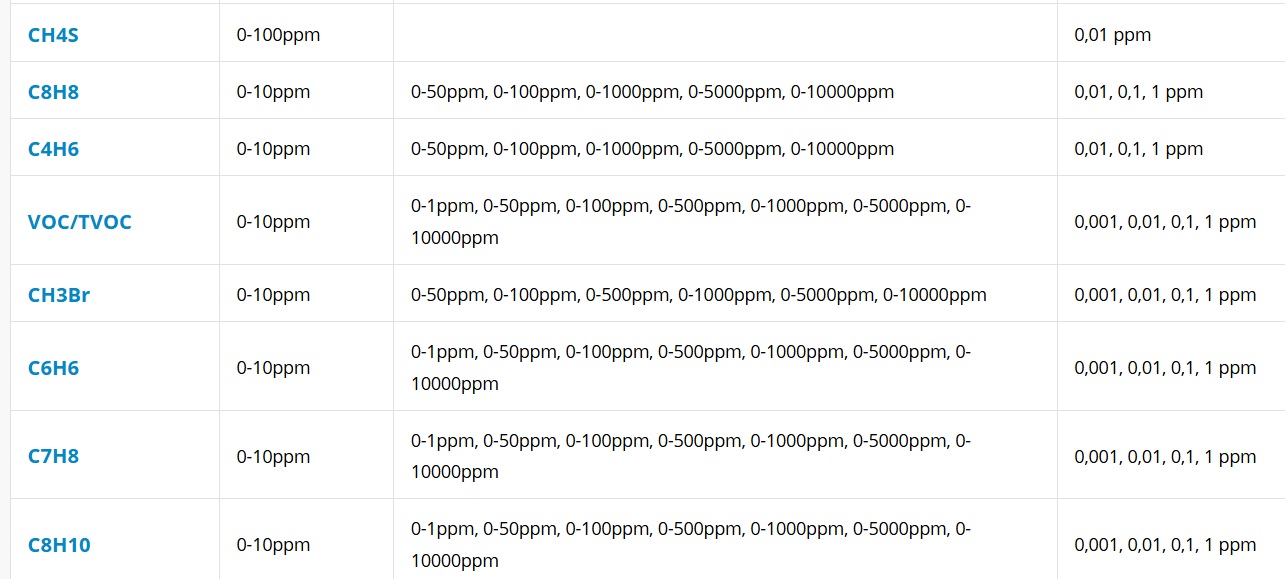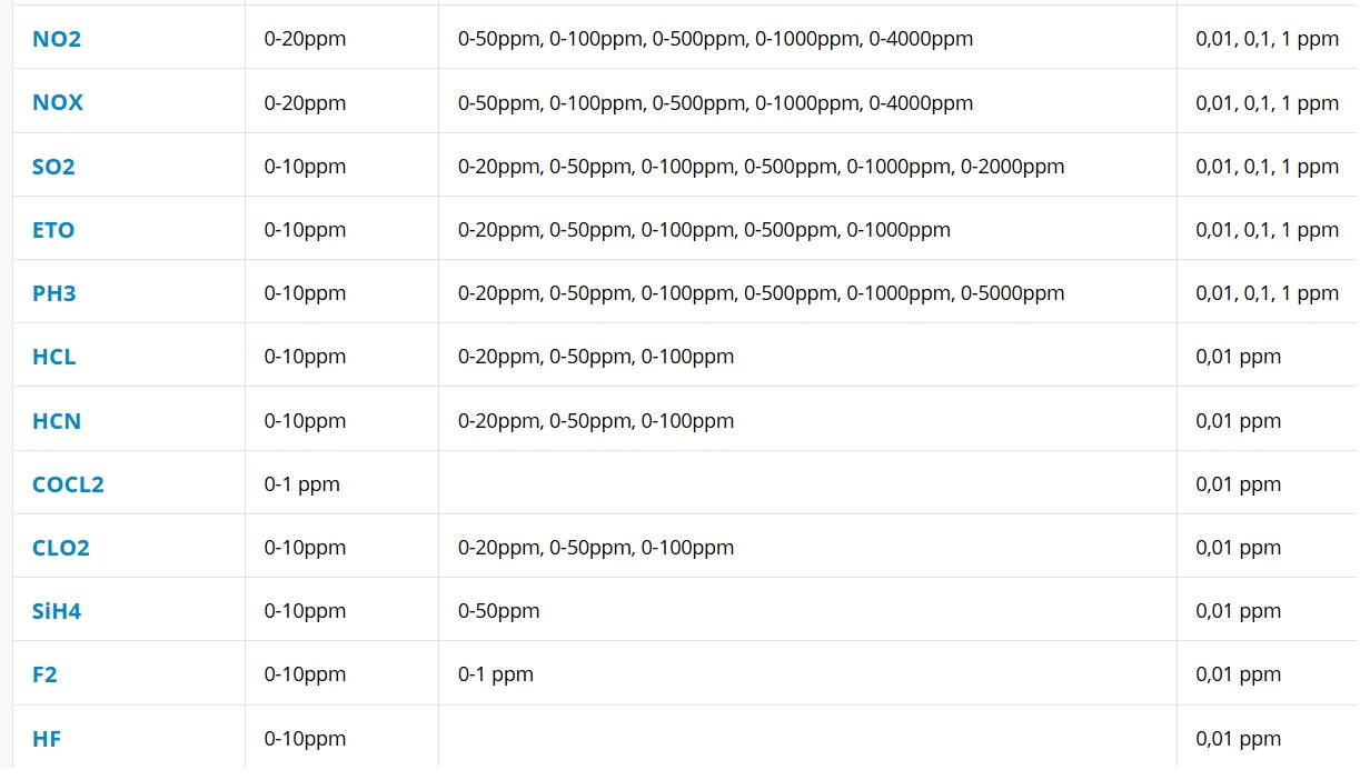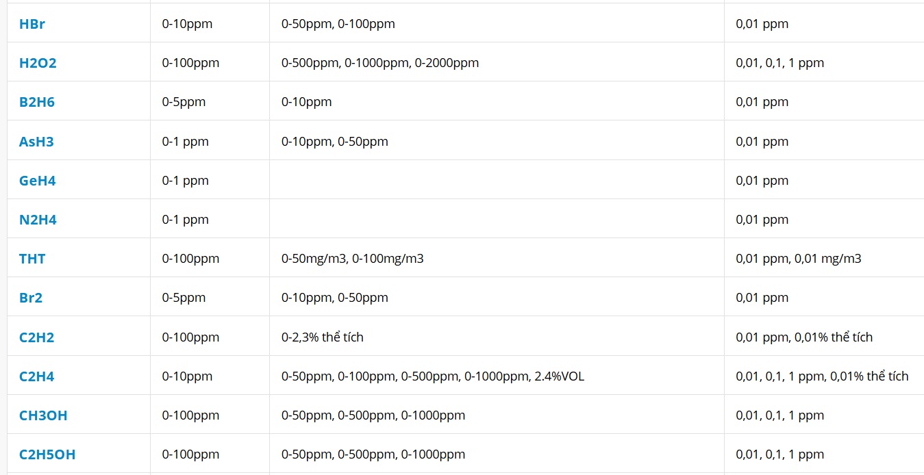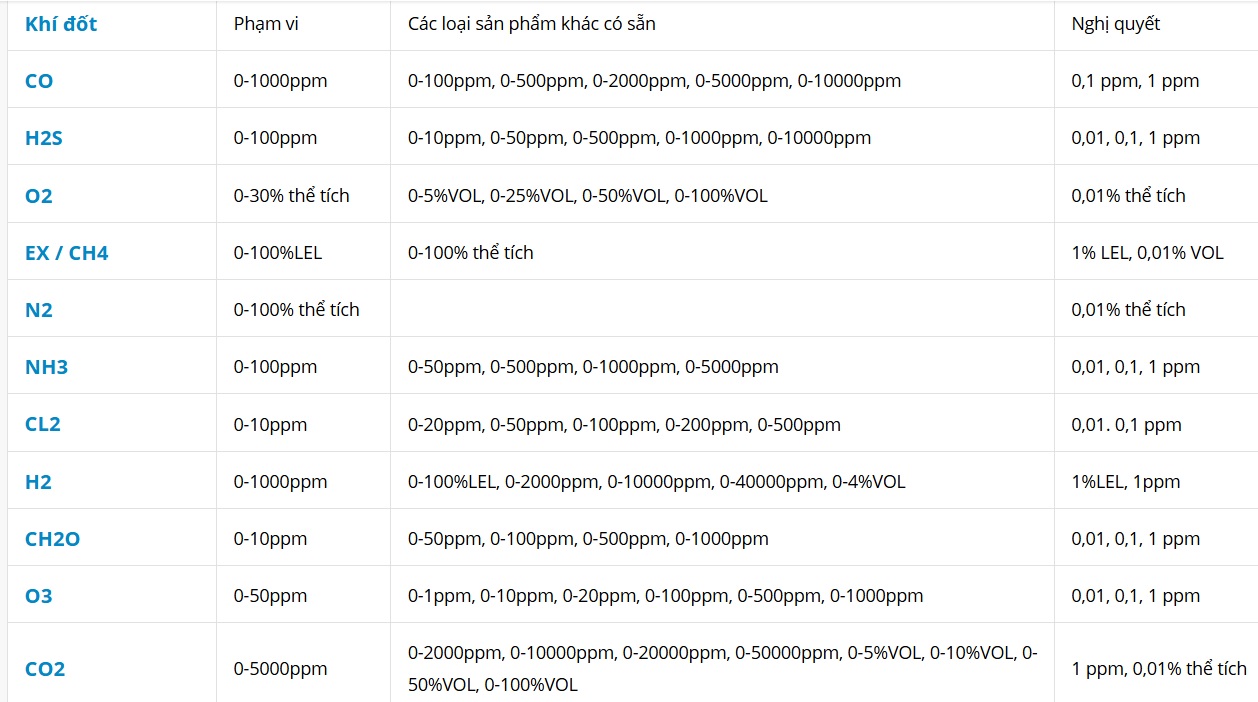 Quý khách hàng lựa chọn máy dò khí cầm tay SKY3000 Safegas theo loại khí và giải đo sau: