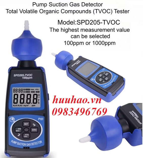 - Máy kiểm tra SPD205-TVOC là một thiết bị chuyên nghiệp tiết kiệm chi phí để phát hiện nồng độ tổng hợp chất hữu cơ dễ bay hơi trong không khí, với độ nhạy phát hiện 0,01ppm, sử dụng cảm biến phát hiện quang ion hóa (PID). Đây là máy dò khí TVOC phổ rộng, sử dụng đèn tím 10,6eV, có thể phát hiện tổng nồng độ của hơn 100 loại khí dễ bay hơi trong không khí, và cũng có thể phát hiện nồng độ của một loại khí nhất định (Khi phát hiện một loại khí đơn lẻ, cần phải thiết lập hệ số hiệu chuẩn theo loại khí đó, nếu không sai số sẽ lớn. Ngay cả khi đã thiết lập hệ số hiệu chuẩn, sai số vẫn sẽ lớn hơn so với khi thử nghiệm khí chuẩn "isobutylene"). Đồng thời, thiết bị cũng có thể phát hiện nhiều dữ liệu khác nhau như giá trị nhiệt độ môi trường hiện tại, nồng độ tối đa theo thời gian thực (MAX), nồng độ tối thiểu theo thời gian thực (MIN), giá trị STE, giá trị TWA... và phù hợp để phát hiện ô nhiễm không khí trong môi trường tại các nhà máy, tòa nhà công cộng, lớp học, phòng hội nghị và các không gian công cộng.