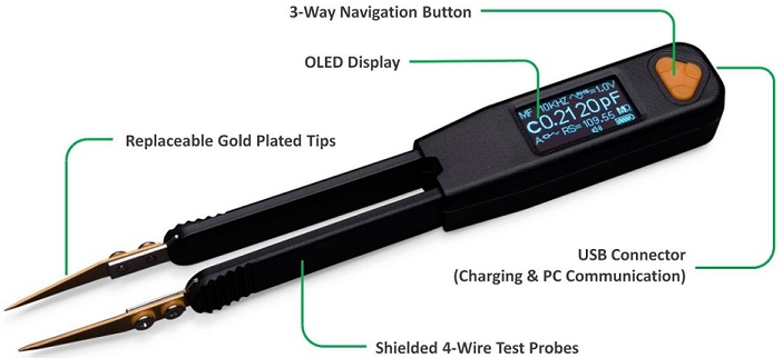 - Máy đo linh kiện dạng nhíp LCR Pro1tích hợp một cặp nhíp như thăm dò và đo LCR thành một, nhẹ, pin thiết bị nhỏ gọn duy nhất. Nó là một tất cả-trong-một thiết bị