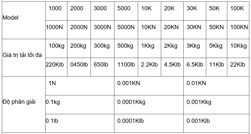 - Hiển thị đồng thời các đơn vị Newton (N), kilôgam (Kg) và Pound (lb).