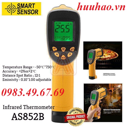 - Máy đo nhiệt độ hồng ngoại Smart Sensor AS852B có khả năng đo những nguồn nhiệt từ xa, không cần tiếp xúc trực tiếp với độ chính xác cao và nhanh chóng. Thiết kế nhỏ gọn, chắc chắn và dễ sử dụng. Chỉ cần nhắm và nhấn nút, bạn có thể đọc thông số trên màn hình hiển thị một cách nhanh chóng.