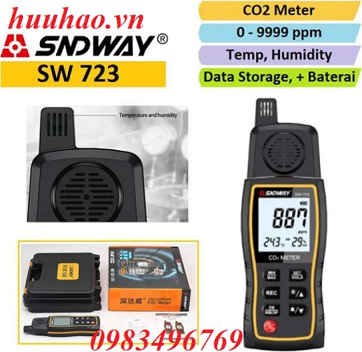 - Máy Đo Nồng Độ Khí Carbon Dioxide SNDWAY SW-723 đo nồng độ carbon dioxide trong thời gian thực. Thời gian đáp ứng nhanh, gọn, dễ mang theo và lý tưởng để kiểm tra chất lượng không khí trong nhà; văn phòng, nhà máy, khách sạn, trường học và các môi trường khác trong nhà…