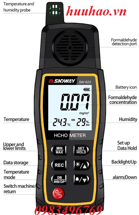Thông số kỹ thuật máy dò phát hiện khí formaldehyde Sndway SW-623 HCHO: