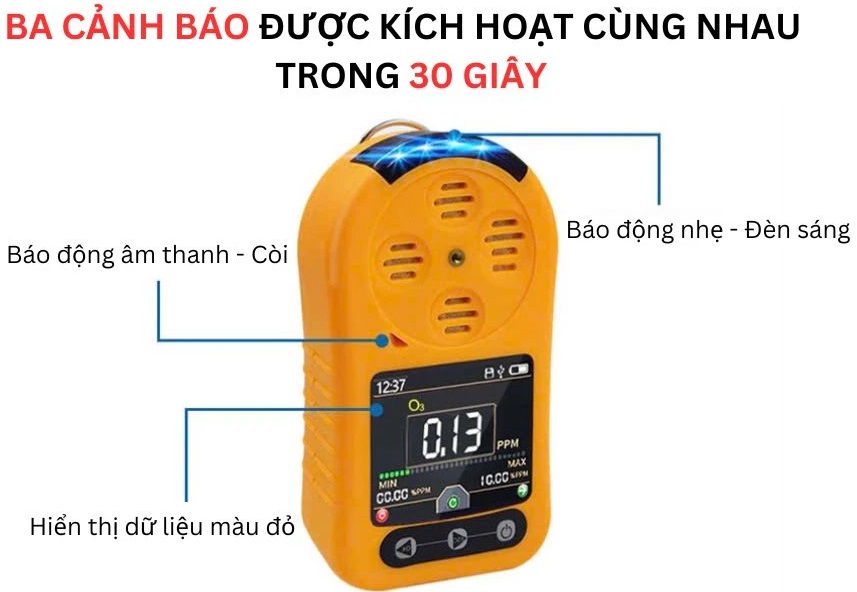 - Phạm vi: 0-100ppm hoặc 0-10ppm (lựa chọn giải đo)