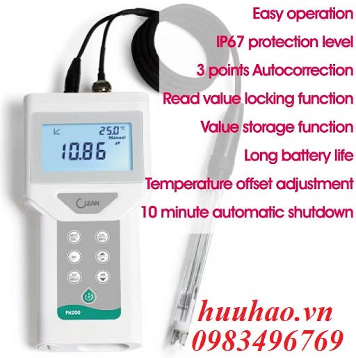 - Máy đo pH, mV, ORP, Temp cầm tay CLEAN PH200 với khái niệm thiết kế chính xác và thiết thực: vận hành đơn giản, chức năng mạnh mẽ, thông số đo hoàn chỉnh, phạm vi đo rộng. Bốn bộ với kết hợp đệm 5 điểm, một phím để hiệu chuẩn và tự động nhận dạng đệm.