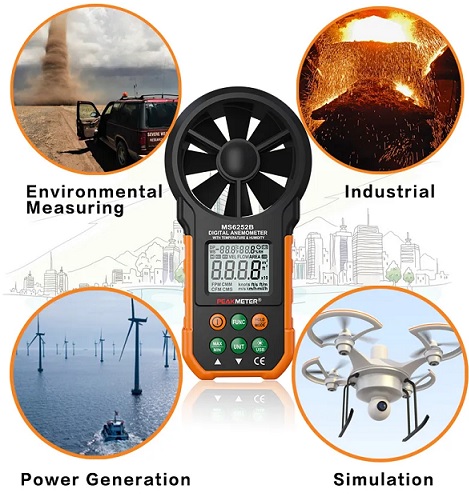 - Máy đo tốc độ gió, nhiệt độ, độ ẩm môi trường PM6252B Peak meter là một thiết bị đo chuyên nghiệp, cầm tay với màn hình LCD lớn và đèn nền, các chức năng chuyển đổi nhiều đơn vị. Nó có thể được sử dụng để đo cầm tay hoặc cố định với các chức năng đọc giữ, tối đa, tối thiểu, v.v. Trong khi đó, nó cũng có chỉ báo pin yếu và chức năng tải lên dữ liệu thời gian thực USB.