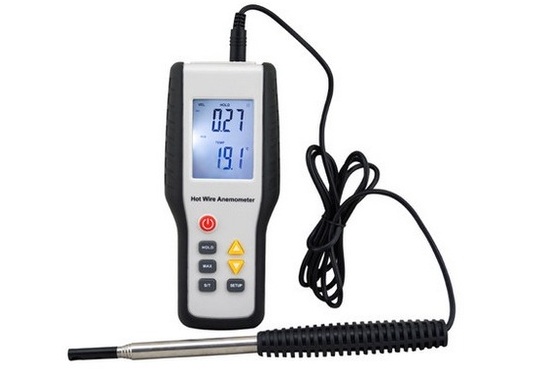 - Máy đo tốc độ gió bằng dây nhiệt là phương pháp phổ biến nhất được sử dụng để đo vận tốc dòng chảy tức thời. Kỹ thuật này phụ thuộc vào sự mất nhiệt đối lưu với các dòng chảy xung quanh từ một phần tử cảm biến nhiệt bằng điện