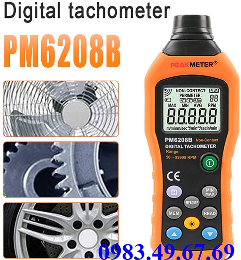 Máy đo tốc độ vòng quay, thiết bị đo tốc độ động cơ Peakmeter PM6208B giá rẻ